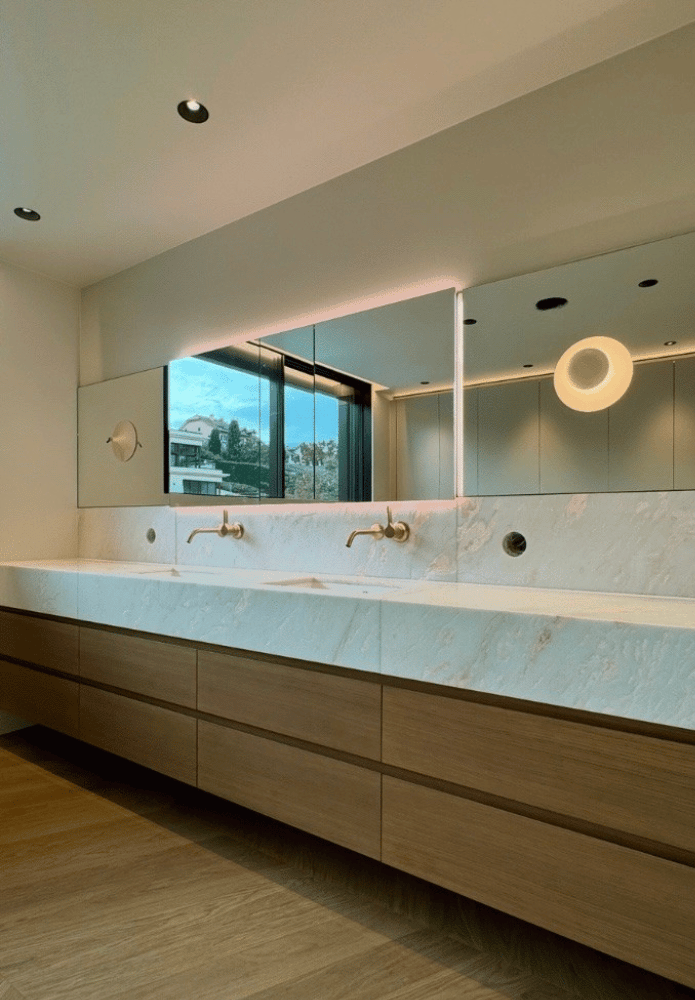 Construction d’une villa contemporaine de 950 m², intégrant une piscine intérieure et une piscine extérieure, pensées comme de véritables lieux de détente.