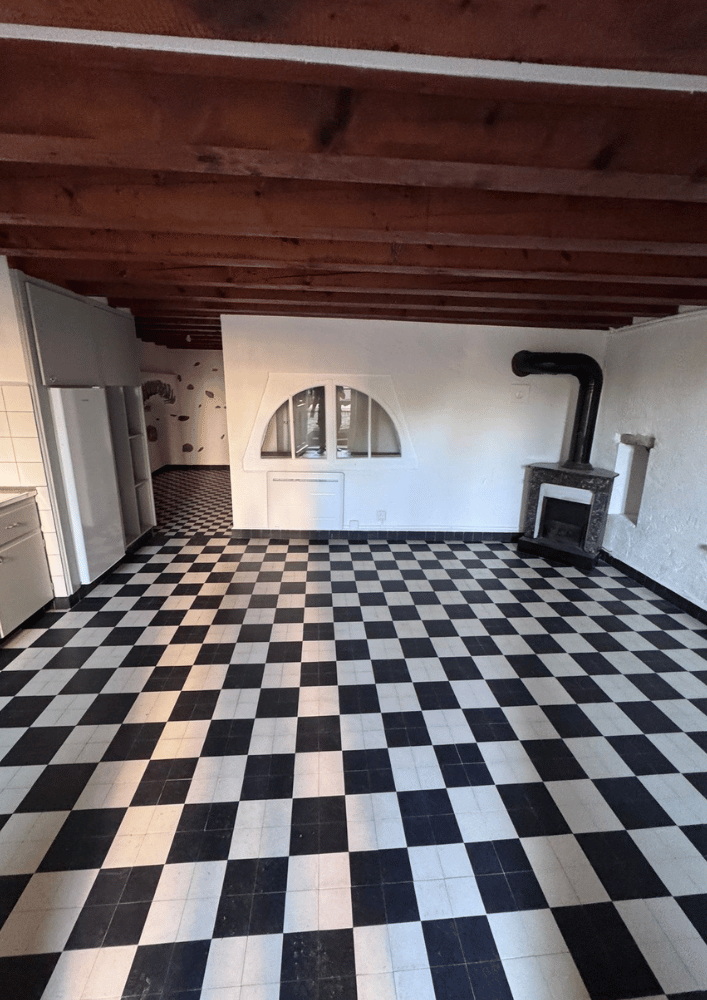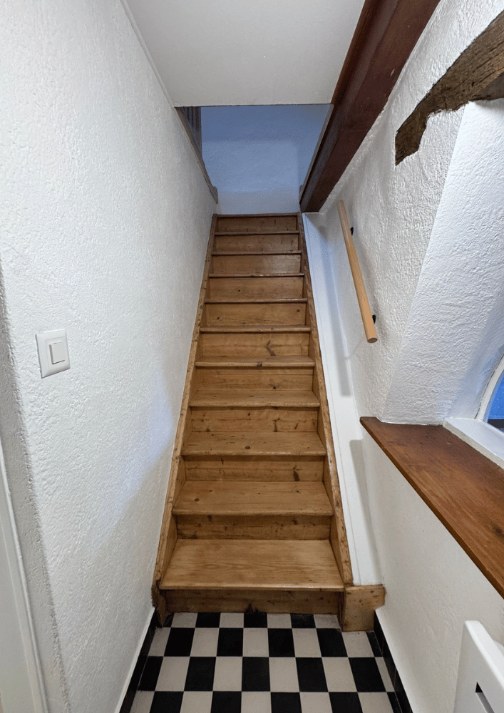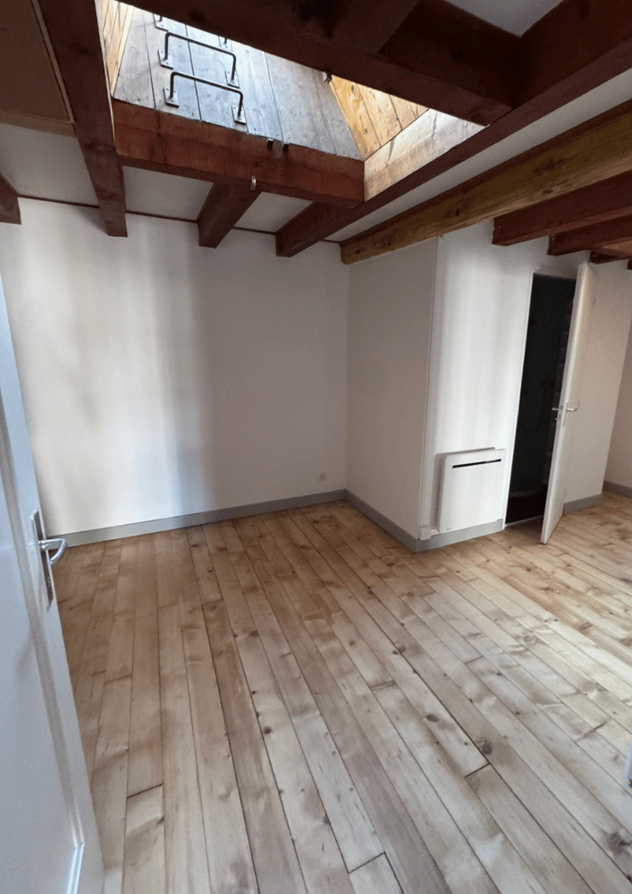 Restauration du parquet, changement des menuiseries extérieures et création d’une place de parking avec pavés drainants.
